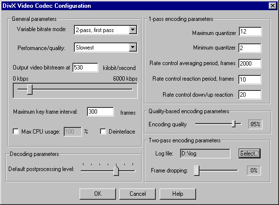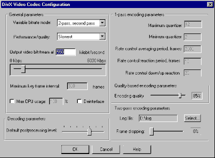 Cliquez sur DivX et ensuite le bouton CONFIGURE.Maintenant changez le variable bitrate mode de 2-PASS, FIRST PASS
