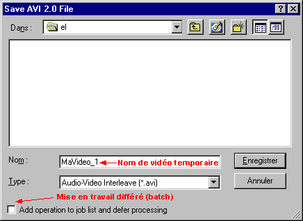 Faire à nouveau FILE, SAVE AS AVI et donner le nom définitif de votre